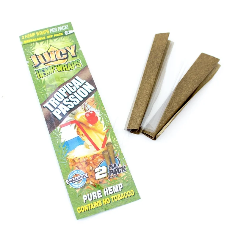Key Features: Hemp wraps without tobacco. Tropical Passion flavor. 2 pieces per pack. Slow-burning. Exotic fruit touch.