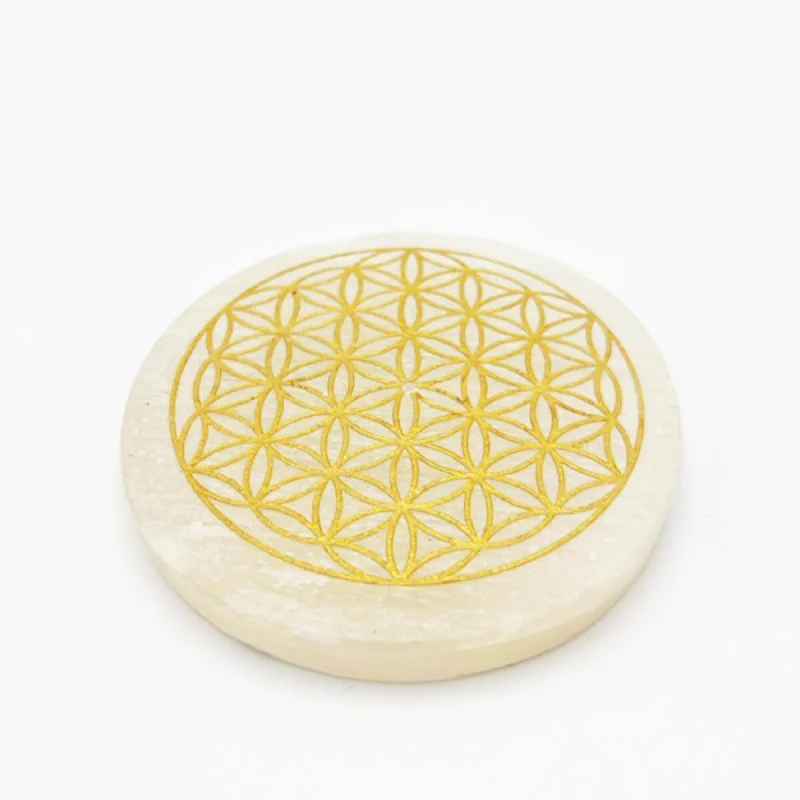 Incense Holder Selenite Round - Flower of Life | Incense Accessory