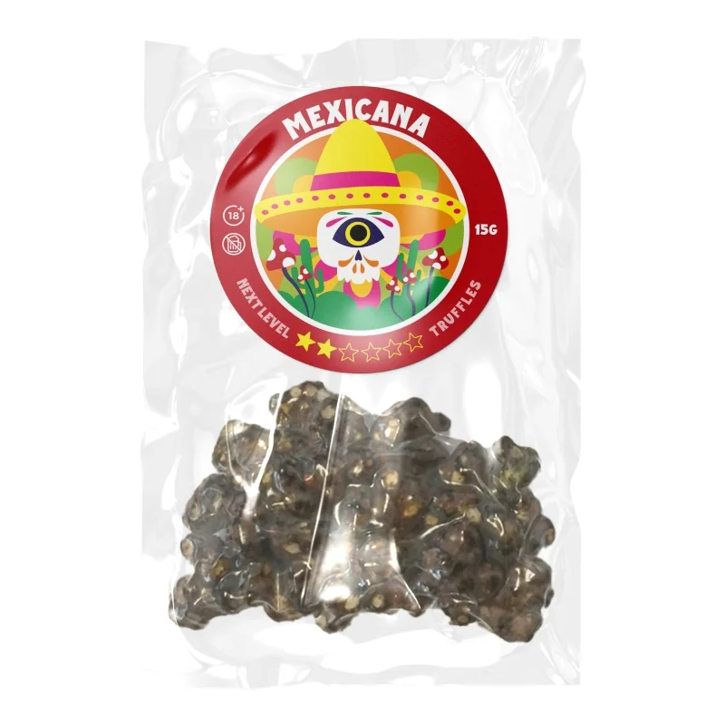 The effects of Mexicana truffles last 3-5 hours, making it one of the shorter-lasting varieties. The first subtle changes appear 20-40 minutes after ingestion on an empty stomach. Peak effects are reached at 1-2 hours. The gentle nature of the comedown means you typically feel clear and refreshed afterwards.