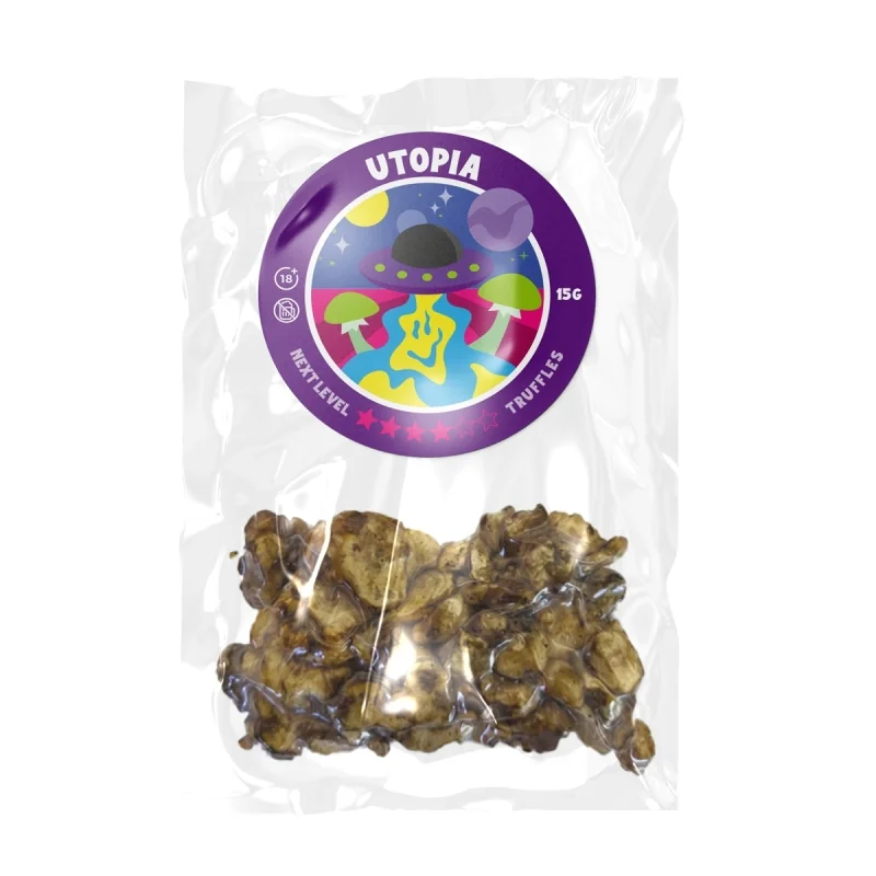De Psilocybe Utopia is een heel bijzonder type sclerotia. Het is een van de sterkste truffels die je kunt krijgen. Het is een variant van de beroemde Psilocybe Atlantis, en het dankt zijn naam aan de speciale hallucinaties die je met deze truffels krijgt. De Utopia geeft je sterke visuals, een all over body-high en het gevoel van verbinding met de natuur.