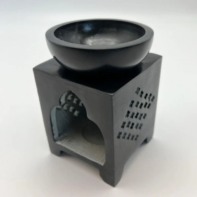 De zwarte zeepsteen houdt warmte uitstekend vast en verspreidt geuren gelijkmatig door je ruimte. Een waardevol object dat functionaliteit, spiritualiteit en esthetiek verenigt.